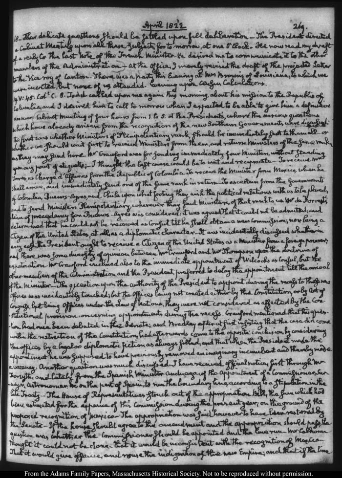 View full, authoritative transcriptions with page images of the diaries at John Quincy Adams Digital Diary part of the Primary Source Cooperative at the MHS.