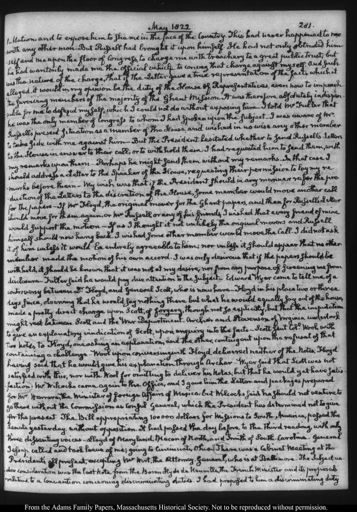 John Quincy Adams diary 32, 21 March 1821 - 30 November 1822 (with gaps), page 281