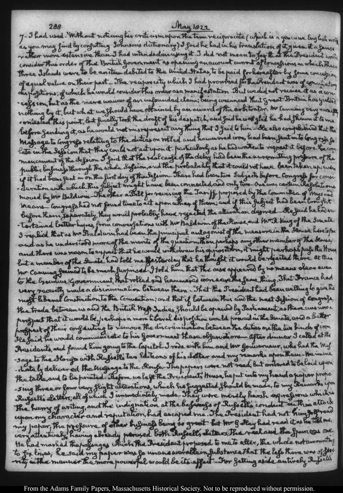 John Quincy Adams diary 32, 21 March 1821 - 30 November 1822 (with gaps), page 288