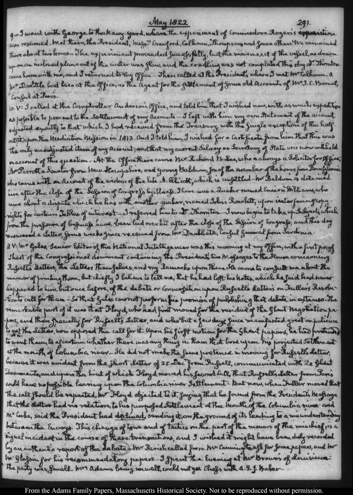 John Quincy Adams diary 32, 21 March 1821 - 30 November 1822 (with gaps), page 291