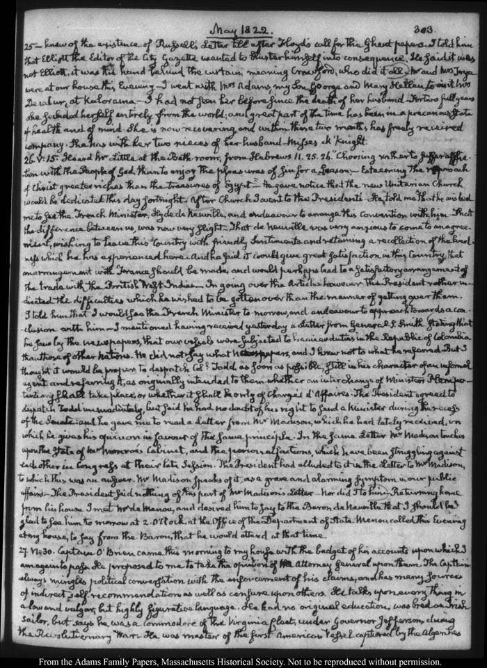 John Quincy Adams diary 32, 21 March 1821 - 30 November 1822 (with gaps), page 303