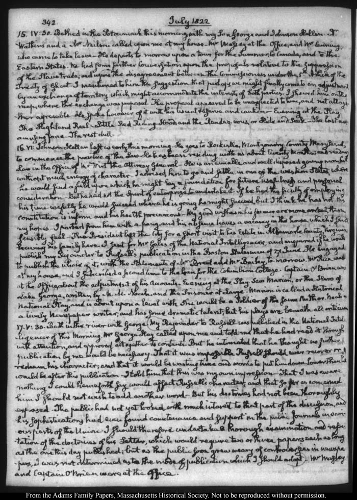 John Quincy Adams diary 32, 21 March 1821 - 30 November 1822 (with gaps), page 342