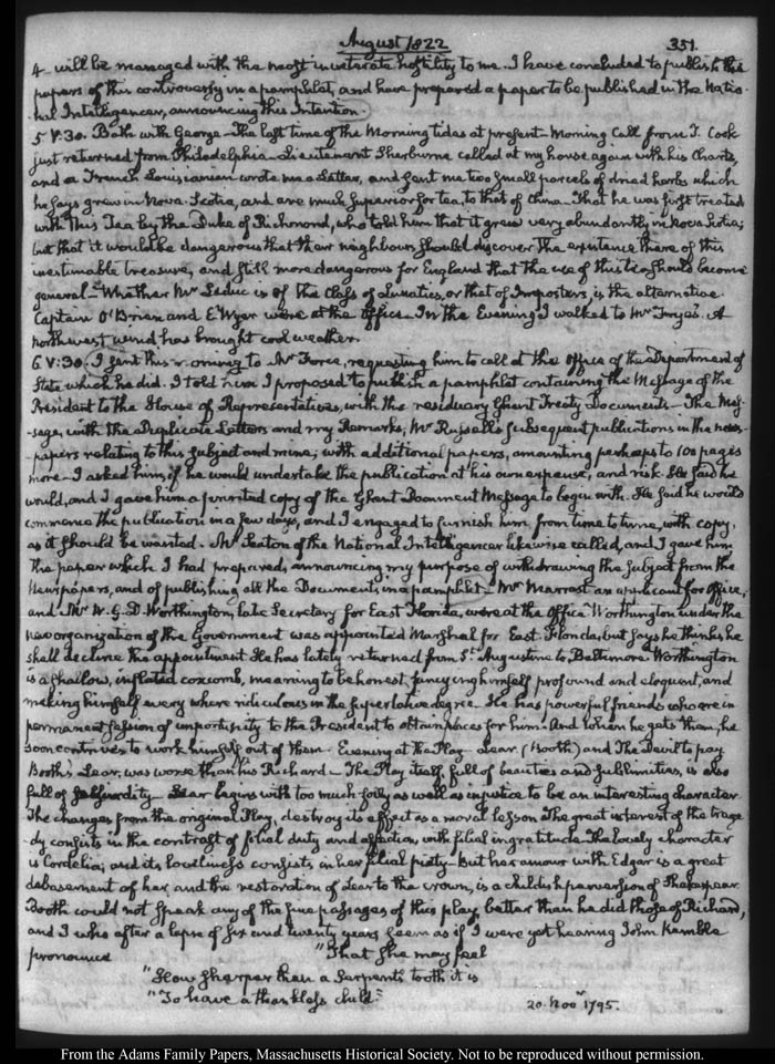 John Quincy Adams diary 32, 21 March 1821 - 30 November 1822 (with gaps), page 351