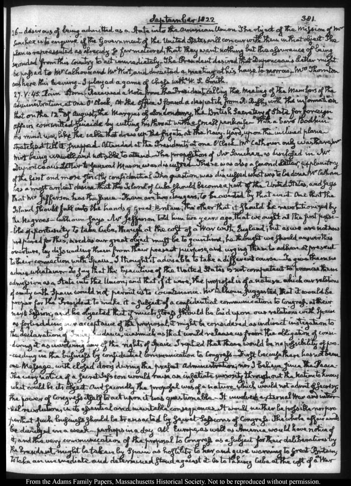 John Quincy Adams diary 32, 21 March 1821 - 30 November 1822 (with gaps), page 381