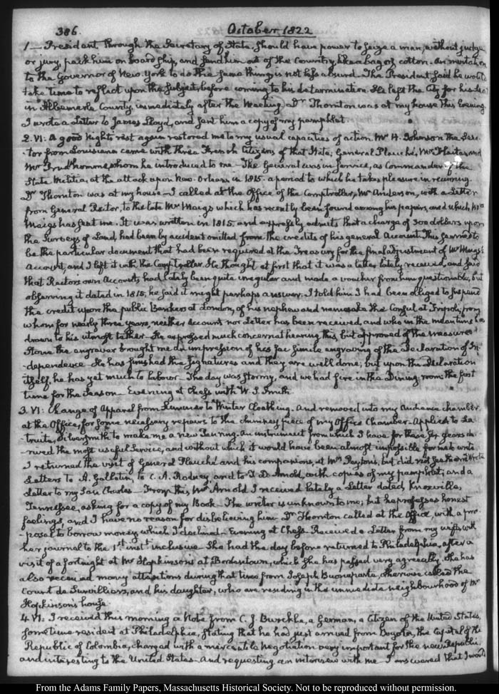 John Quincy Adams diary 32, 21 March 1821 - 30 November 1822 (with gaps),