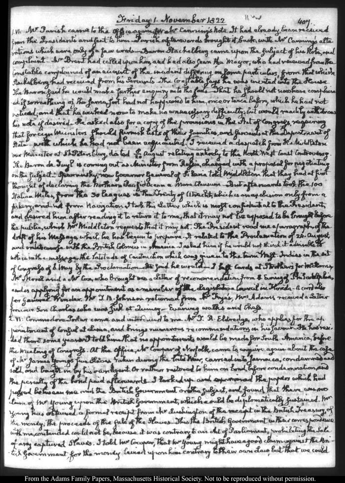 John Quincy Adams diary 32, 21 March 1821 - 30 November 1822 (with gaps), page 407