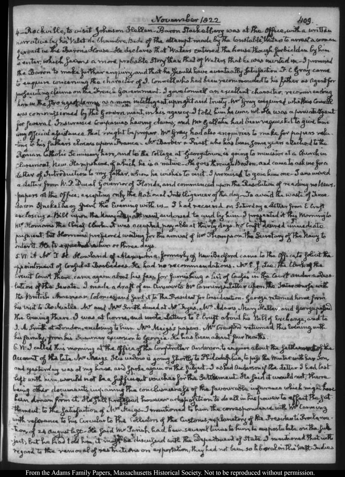 John Quincy Adams diary 32, 21 March 1821 - 30 November 1822 (with gaps), page 409