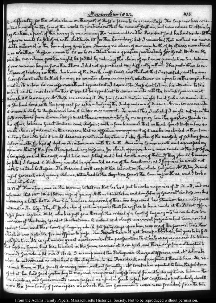John Quincy Adams diary 32, 21 March 1821 - 30 November 1822 (with gaps), page 415