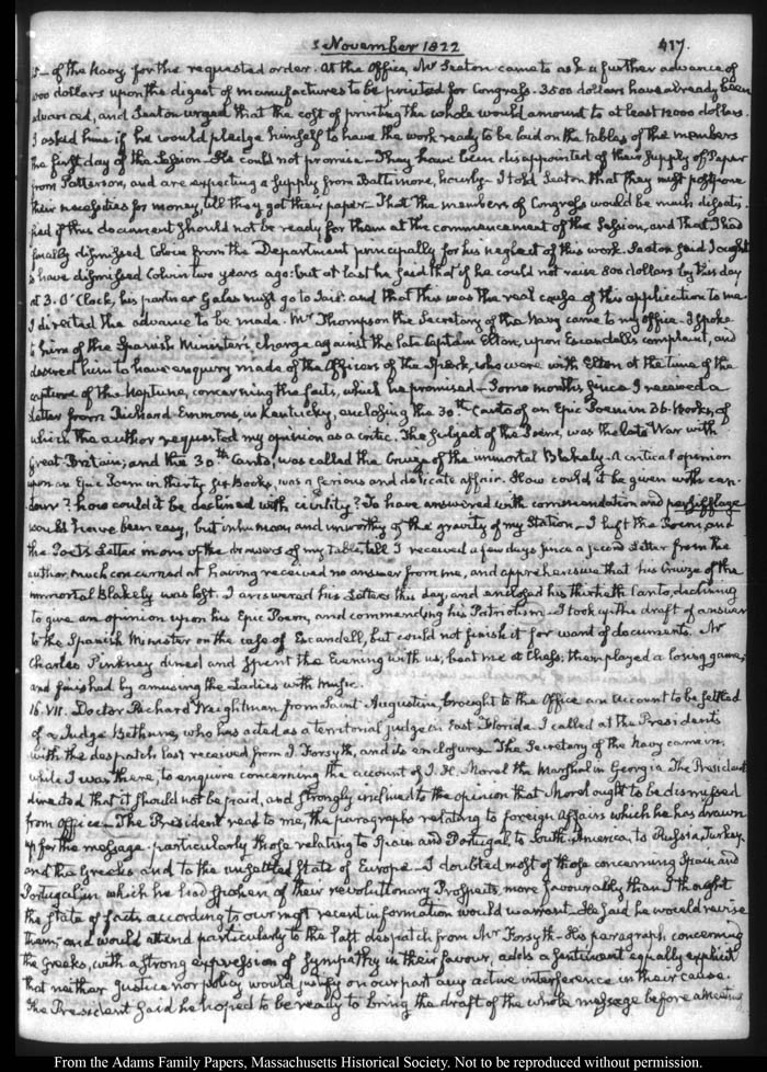John Quincy Adams diary 32, 21 March 1821 - 30 November 1822 (with gaps), page 417