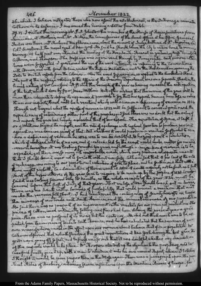 John Quincy Adams diary 32, 21 March 1821 - 30 November 1822 (with gaps), page 426