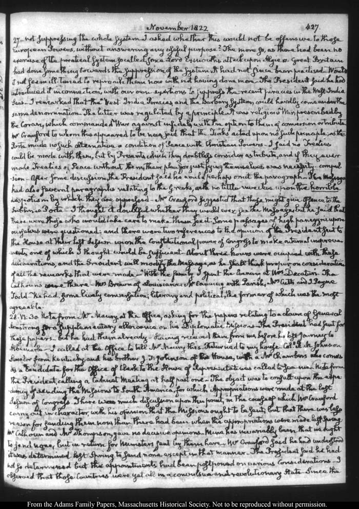 John Quincy Adams diary 32, 21 March 1821 - 30 November 1822 (with gaps), page 427