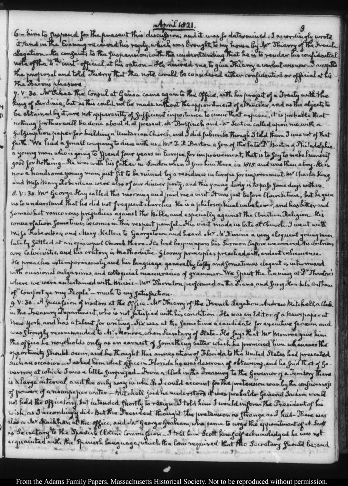 John Quincy Adams diary 32, 21 March 1821 - 30 November 1822 (with gaps), page 9