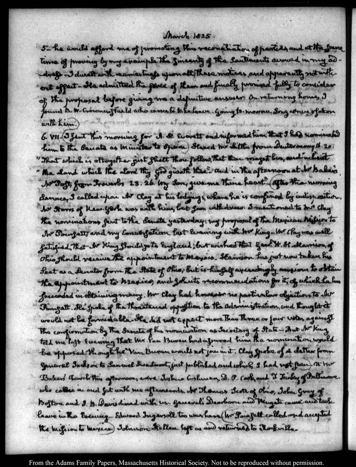 View full, authoritative transcriptions with page images of the diaries at John Quincy Adams Digital Diary part of the Primary Source Cooperative at the MHS.