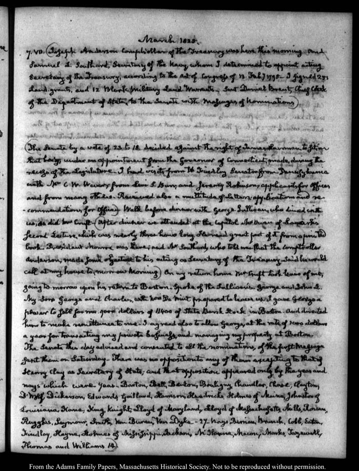View full, authoritative transcriptions with page images of the diaries at John Quincy Adams Digital Diary part of the Primary Source Cooperative at the MHS.