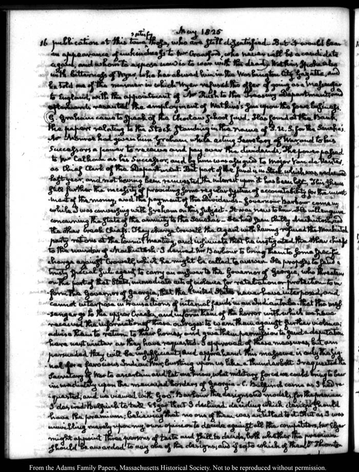 View full, authoritative transcriptions with page images of the diaries at John Quincy Adams Digital Diary part of the Primary Source Cooperative at the MHS.