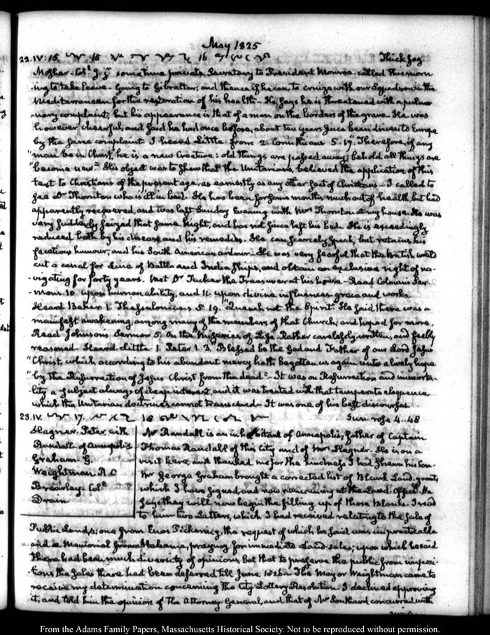 View full, authoritative transcriptions with page images of the diaries at John Quincy Adams Digital Diary part of the Primary Source Cooperative at the MHS.