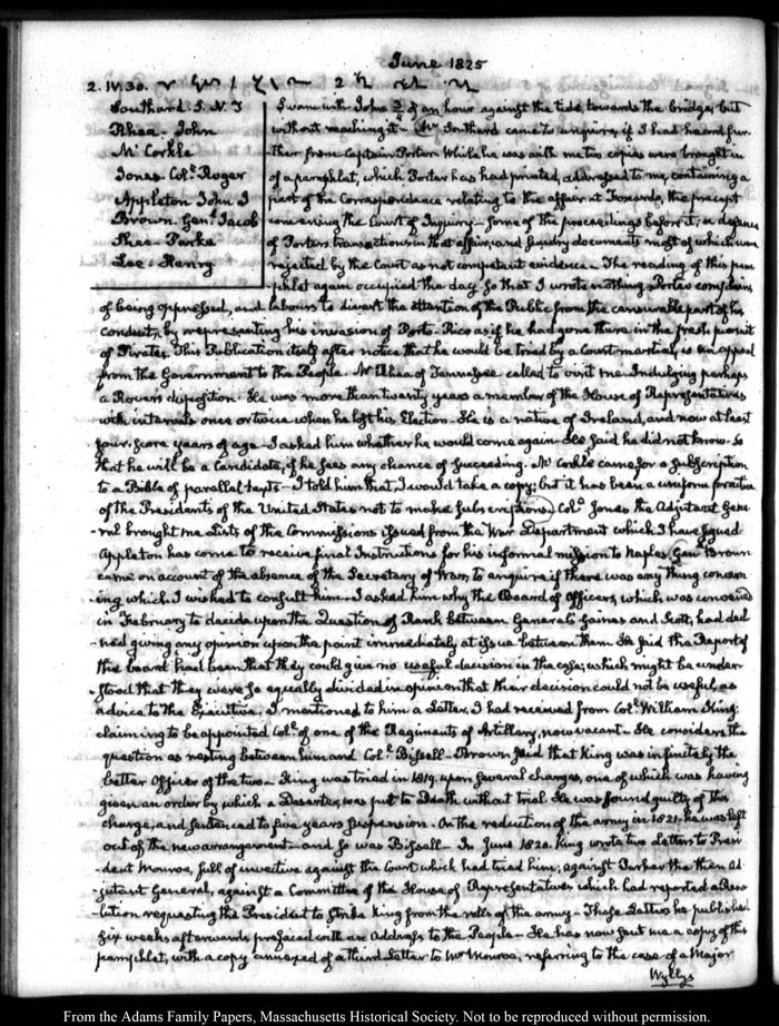 View full, authoritative transcriptions with page images of the diaries at John Quincy Adams Digital Diary part of the Primary Source Cooperative at the MHS.