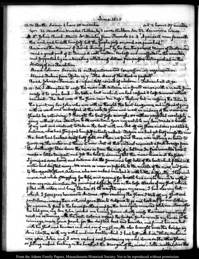 View full, authoritative transcriptions with page images of the diaries at John Quincy Adams Digital Diary part of the Primary Source Cooperative at the MHS.