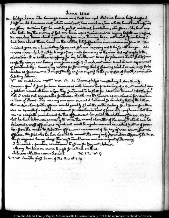 View full, authoritative transcriptions with page images of the diaries at John Quincy Adams Digital Diary part of the Primary Source Cooperative at the MHS.