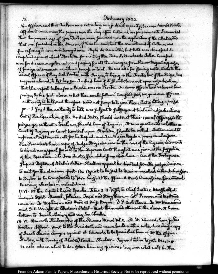 John Quincy Adams diary 33, "Diary in Abridgment," 1 December 1821 - 31 December 1838 (with gaps), page 22
