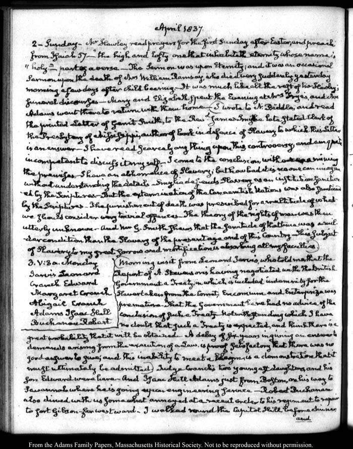 View full, authoritative transcriptions with page images of the diaries at John Quincy Adams Digital Diary part of the Primary Source Cooperative at the MHS.