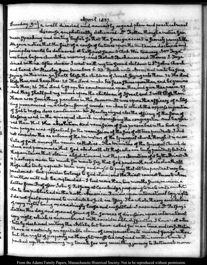 View full, authoritative transcriptions with page images of the diaries at John Quincy Adams Digital Diary part of the Primary Source Cooperative at the MHS.