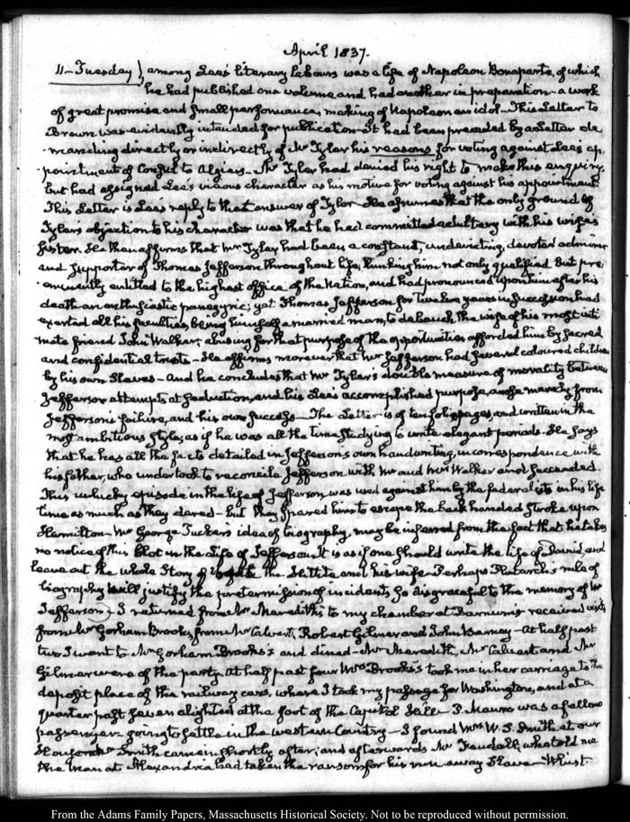 View full, authoritative transcriptions with page images of the diaries at John Quincy Adams Digital Diary part of the Primary Source Cooperative at the MHS.