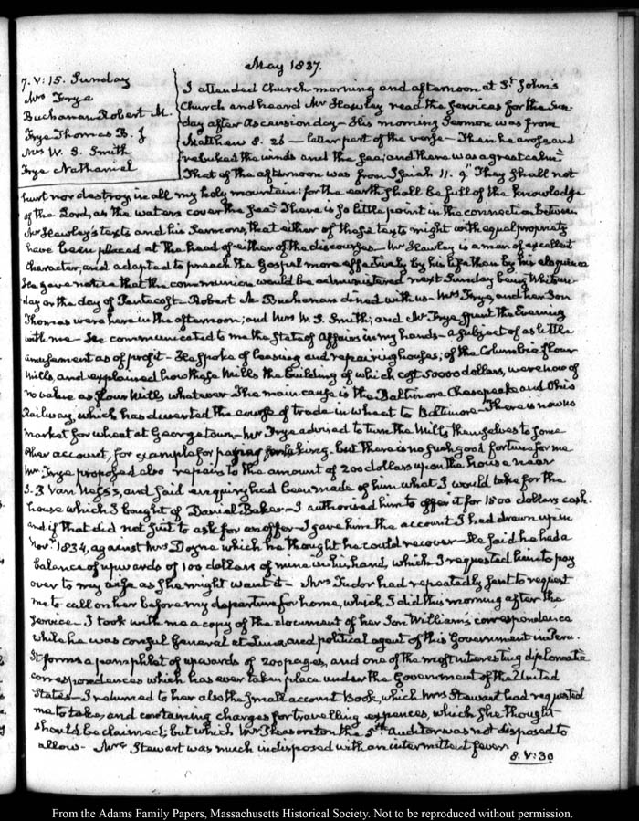 View full, authoritative transcriptions with page images of the diaries at John Quincy Adams Digital Diary part of the Primary Source Cooperative at the MHS.