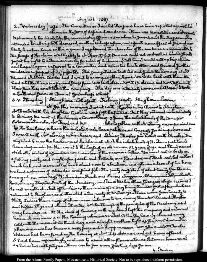 View full, authoritative transcriptions with page images of the diaries at John Quincy Adams Digital Diary part of the Primary Source Cooperative at the MHS.