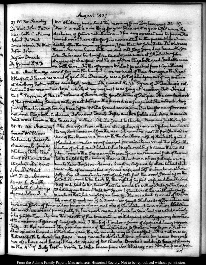 View full, authoritative transcriptions with page images of the diaries at John Quincy Adams Digital Diary part of the Primary Source Cooperative at the MHS.