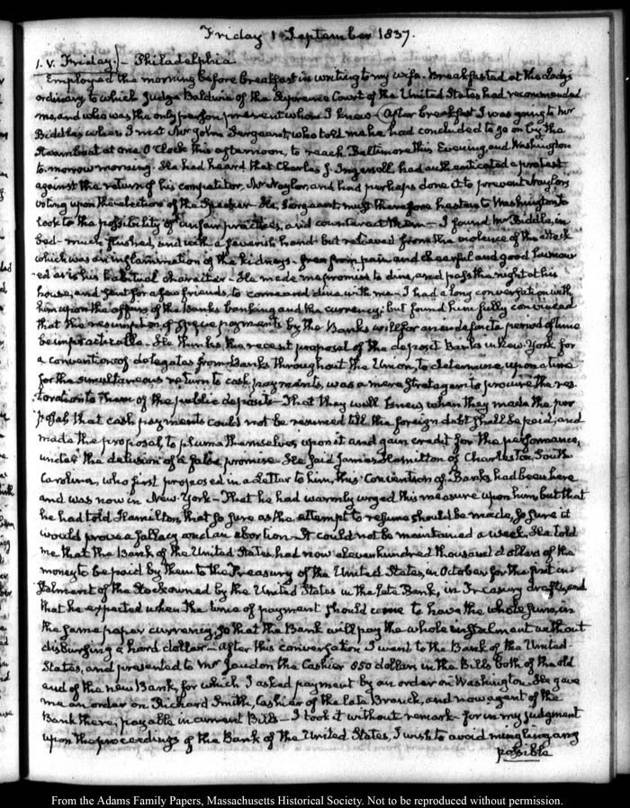 View full, authoritative transcriptions with page images of the diaries at John Quincy Adams Digital Diary part of the Primary Source Cooperative at the MHS.