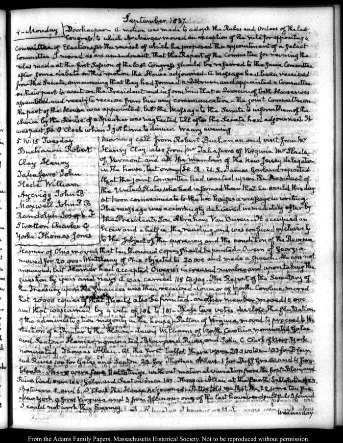 View full, authoritative transcriptions with page images of the diaries at John Quincy Adams Digital Diary part of the Primary Source Cooperative at the MHS.