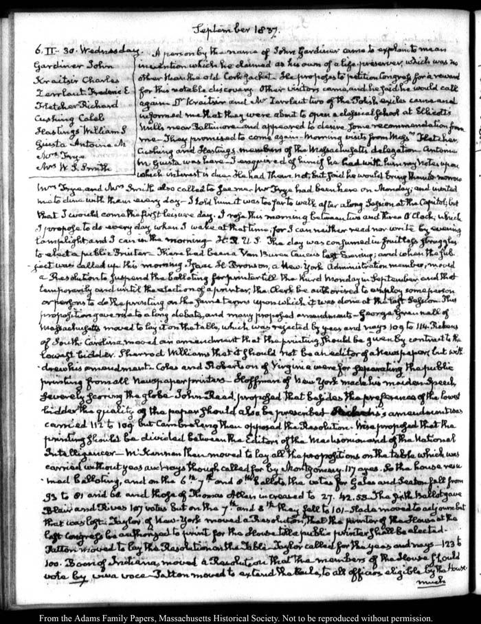 View full, authoritative transcriptions with page images of the diaries at John Quincy Adams Digital Diary part of the Primary Source Cooperative at the MHS.