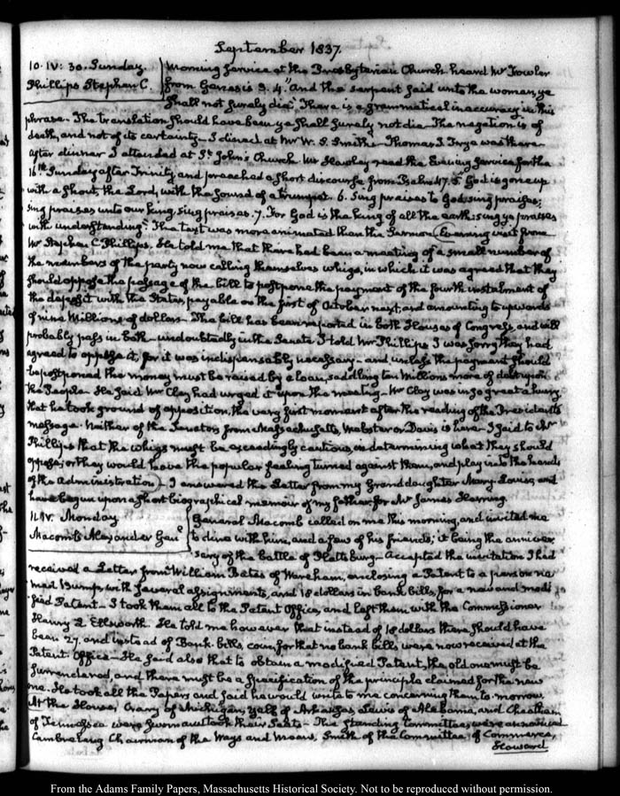 View full, authoritative transcriptions with page images of the diaries at John Quincy Adams Digital Diary part of the Primary Source Cooperative at the MHS.