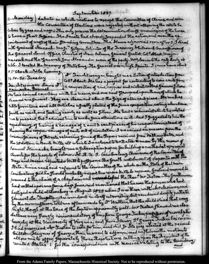 View full, authoritative transcriptions with page images of the diaries at John Quincy Adams Digital Diary part of the Primary Source Cooperative at the MHS.