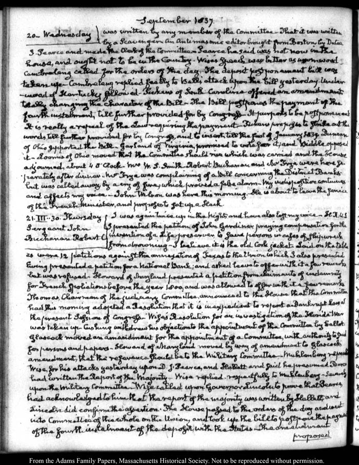 View full, authoritative transcriptions with page images of the diaries at John Quincy Adams Digital Diary part of the Primary Source Cooperative at the MHS.