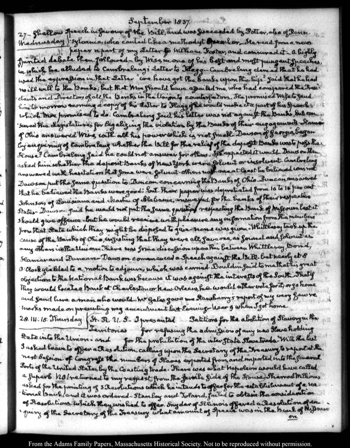 John Quincy Adams diary 33, "Diary in Abridgment," 1 December 1821 - 31 December 1838 (with gaps), page 329