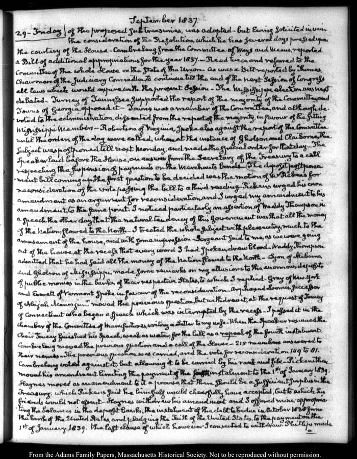 View full, authoritative transcriptions with page images of the diaries at John Quincy Adams Digital Diary part of the Primary Source Cooperative at the MHS.
