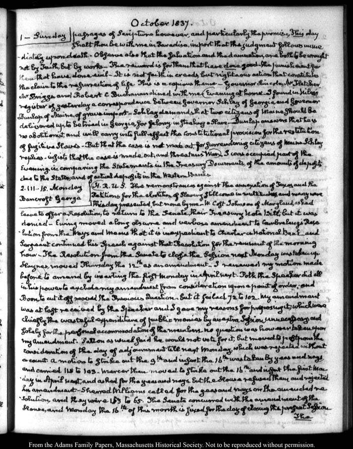 View full, authoritative transcriptions with page images of the diaries at John Quincy Adams Digital Diary part of the Primary Source Cooperative at the MHS.