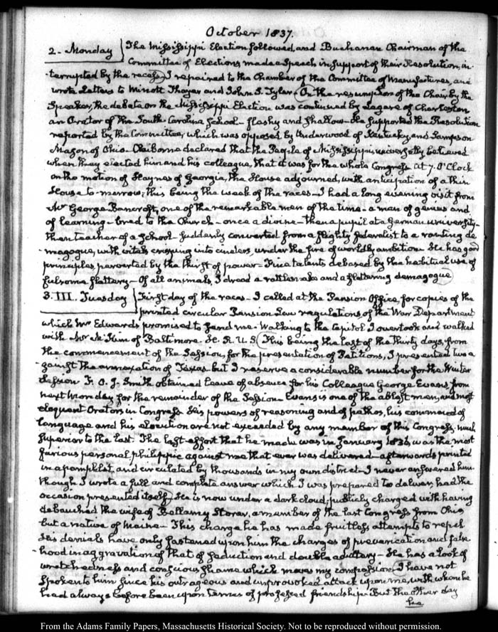 View full, authoritative transcriptions with page images of the diaries at John Quincy Adams Digital Diary part of the Primary Source Cooperative at the MHS.