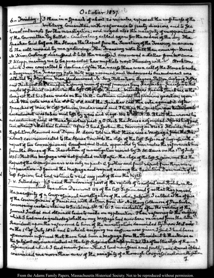 John Quincy Adams diary 33, "Diary in Abridgment," 1 December 1821 - 31 December 1838 (with gaps), page 341