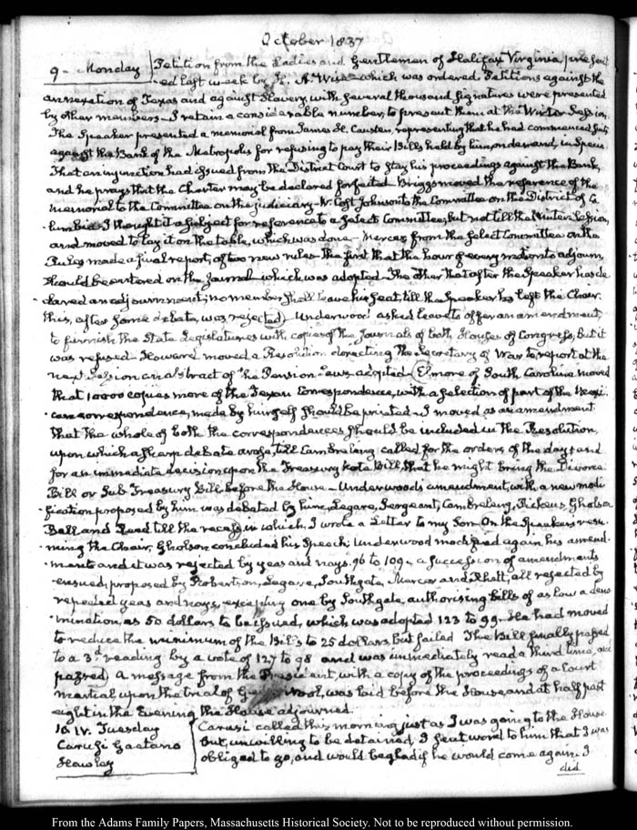 View full, authoritative transcriptions with page images of the diaries at John Quincy Adams Digital Diary part of the Primary Source Cooperative at the MHS.