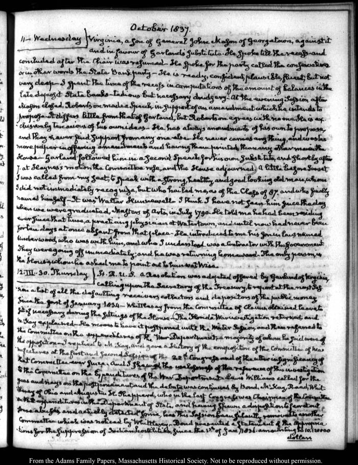View full, authoritative transcriptions with page images of the diaries at John Quincy Adams Digital Diary part of the Primary Source Cooperative at the MHS.