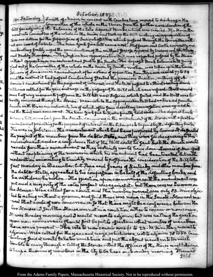 View full, authoritative transcriptions with page images of the diaries at John Quincy Adams Digital Diary part of the Primary Source Cooperative at the MHS.