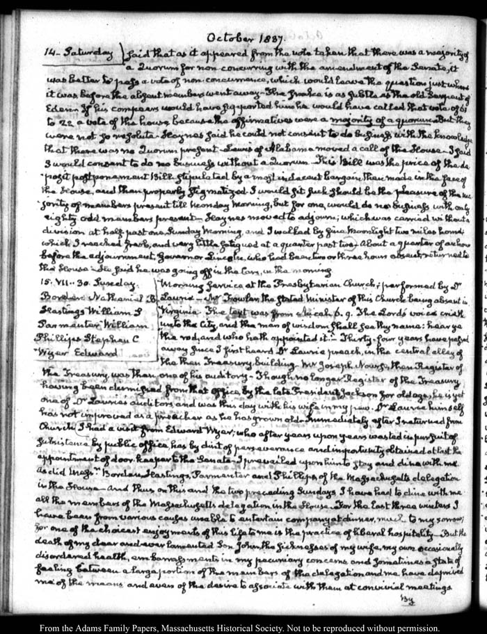 View full, authoritative transcriptions with page images of the diaries at John Quincy Adams Digital Diary part of the Primary Source Cooperative at the MHS.