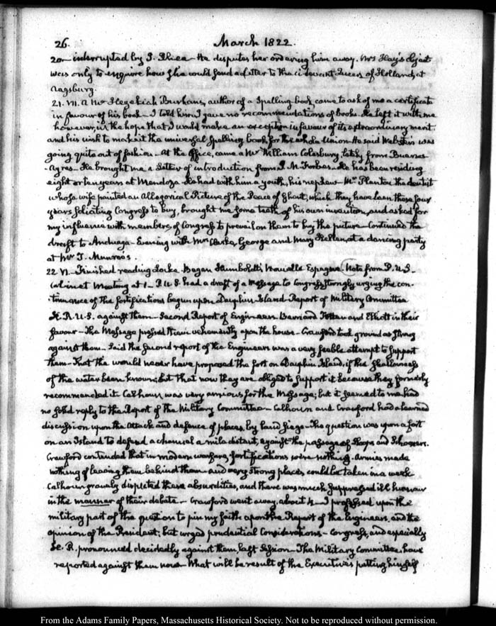 John Quincy Adams diary 33, "Diary in Abridgment," 1 December 1821 - 31 December 1838 (with gaps), page 36