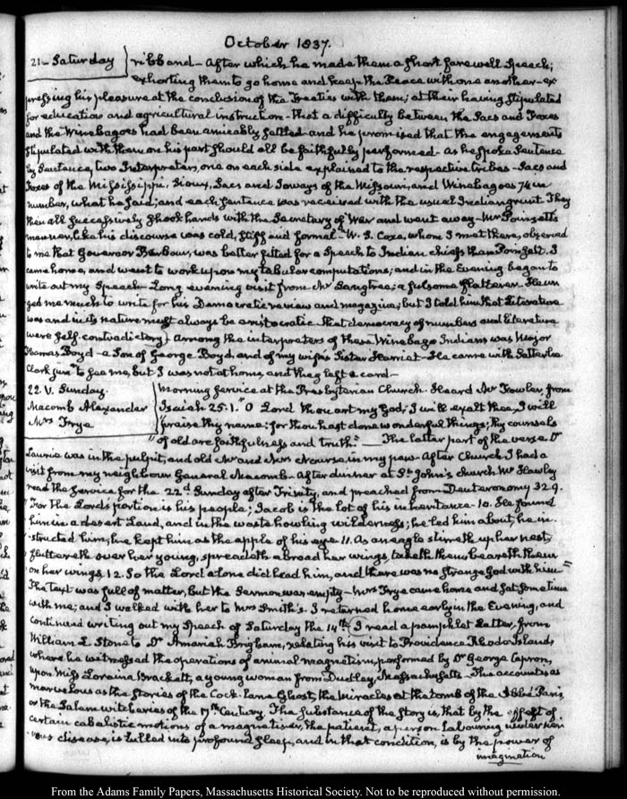 View full, authoritative transcriptions with page images of the diaries at John Quincy Adams Digital Diary part of the Primary Source Cooperative at the MHS.