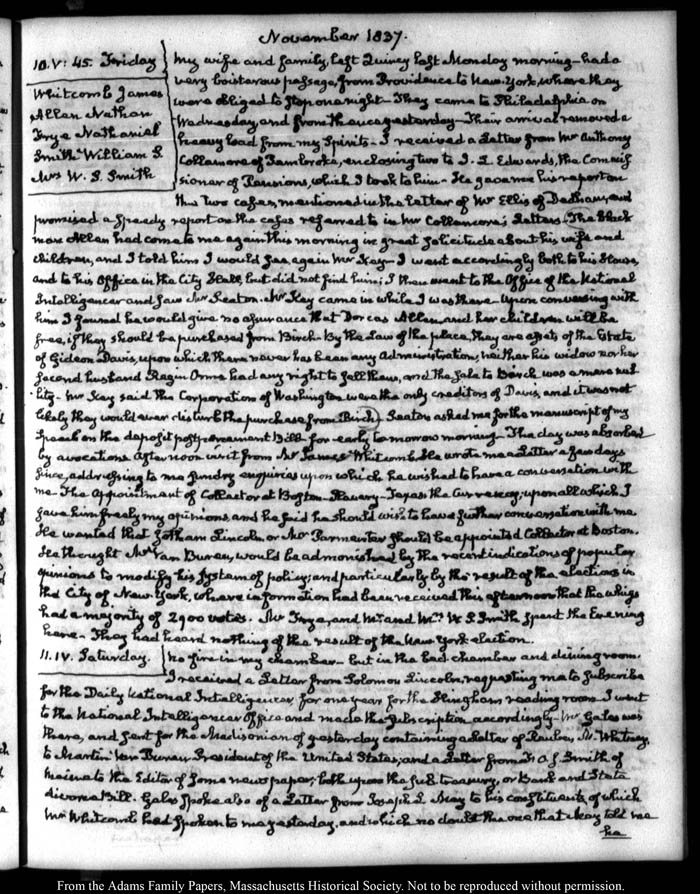 View full, authoritative transcriptions with page images of the diaries at John Quincy Adams Digital Diary part of the Primary Source Cooperative at the MHS.
