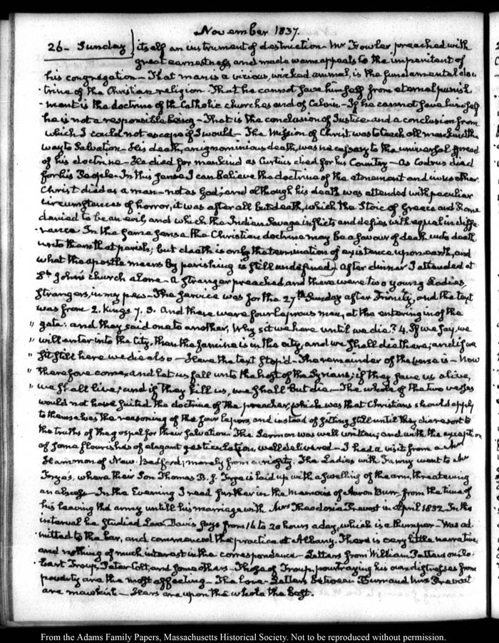 View full, authoritative transcriptions with page images of the diaries at John Quincy Adams Digital Diary part of the Primary Source Cooperative at the MHS.