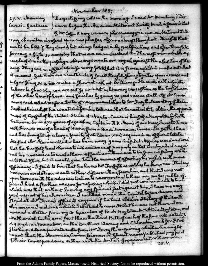 View full, authoritative transcriptions with page images of the diaries at John Quincy Adams Digital Diary part of the Primary Source Cooperative at the MHS.